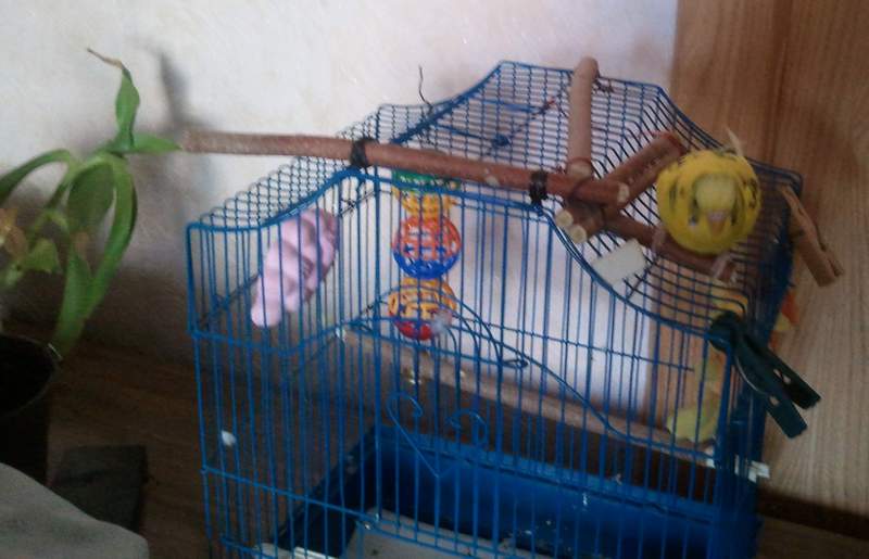 Попугай Микки, молодой, недавно купили за 15$ в радость сыну. Я и тесть не особо довольны его чириканьем, но ниче, хай будет.
