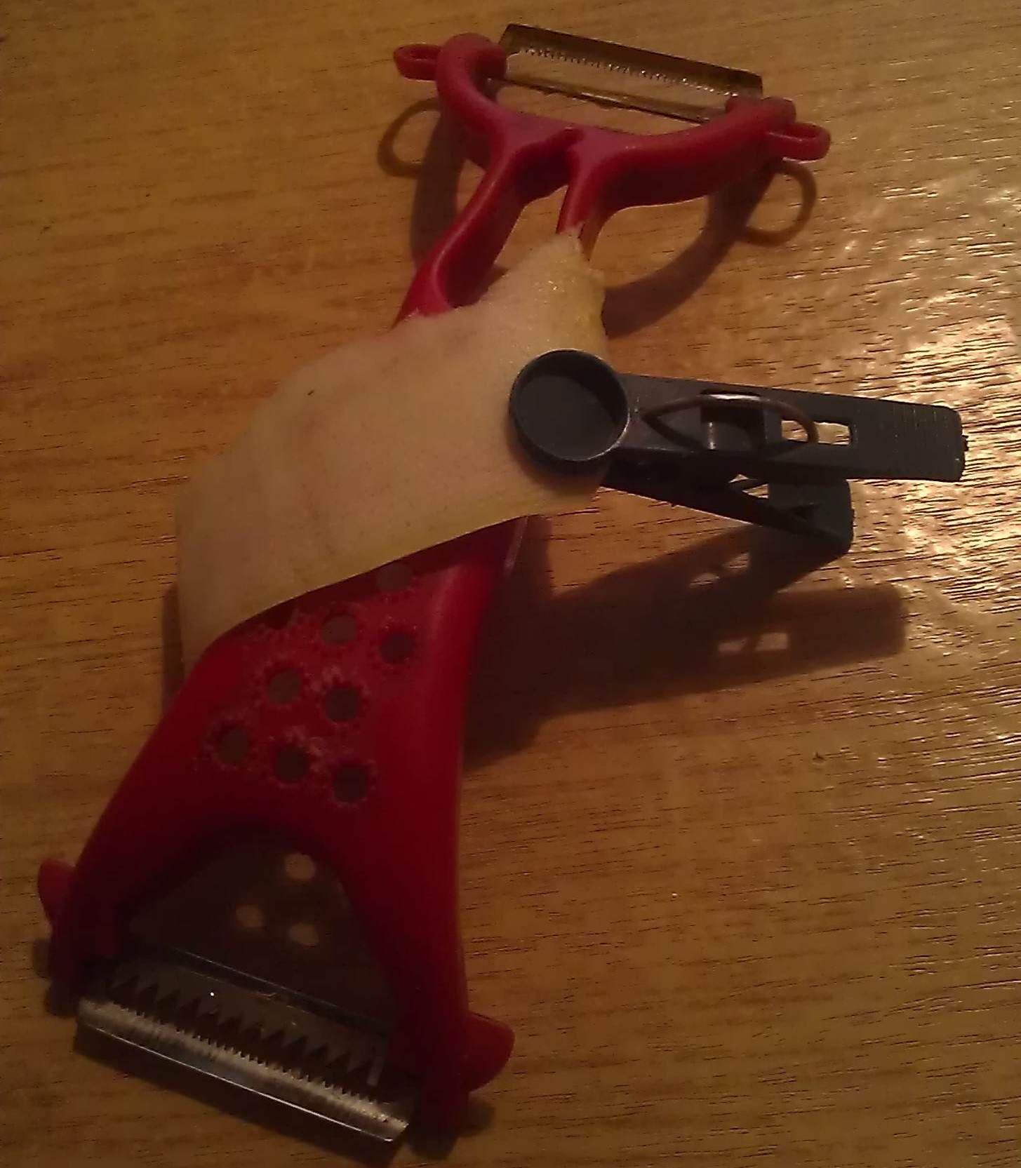 Картофелечисткой срезаю тонкий ломтик и прищепкой к решетке цепляю :)