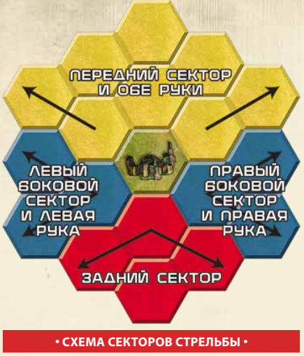 На схеме - баттлемастер может после поворота торса влево стрелять всем арсеналом (кроме установленных в ногах и сзади). Без поворота - только тем что в левой руке. С поворотом вправо - только тем что установлено назад.