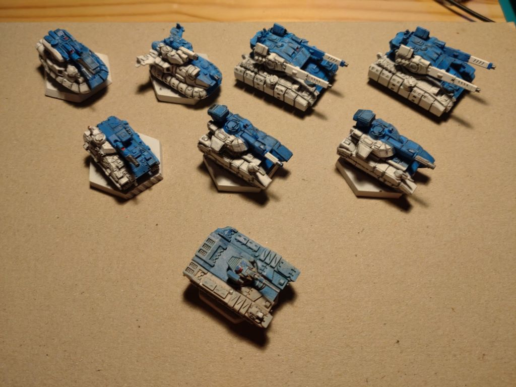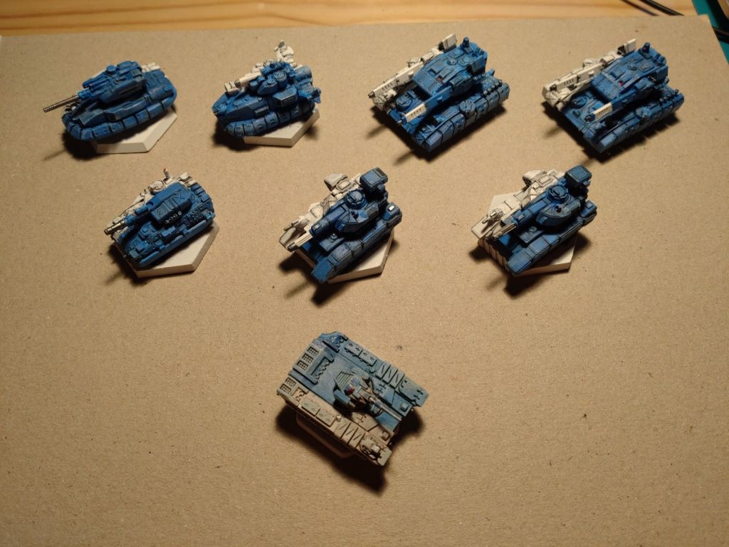 Грунт Vallejo white, базовые цвета Vallejo Magic Blue и AK WhiteGray, проливка Vallejo Wash Black, доводка на сборной солянке Vallejo+AK.