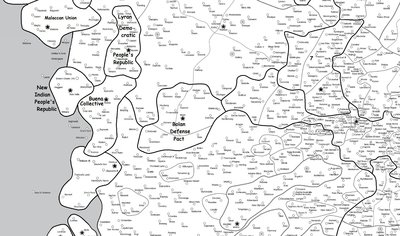 Добавлено спустя 32 минуты 17 секунд:Это мы и видим на карте конца 70-х: слегка располневшая Конфедерация, хапнувший тройку лигистских (а вообще, как бы исконно канопианских) планет Магистрат, независимый, потерявший Риерсон, но присоединивший к себе немного мелочи Андуриен.